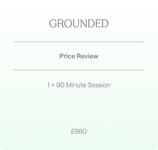 Private Pricing Review (1:1) with a structured process and 90 minute call to set milestones and pricing clarity for the next 3 to 6 months.